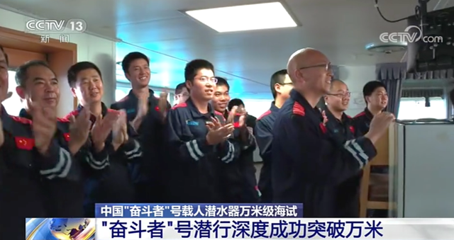2020年11月10日8時12分,我國“奮斗者”號載人潛水器在馬里亞納海溝成功坐底,坐底深度10909米。